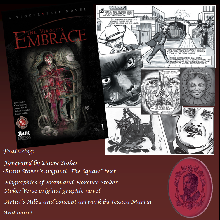 is the first in the StokerVerse series of short graphic novels, conceptualised and brought to life by writers Chris McAuley and Dacre Stoker, the great-grand-nephew of Dracula author Bram Stoker. Illustrated by respected artists Jessica Martin, Robert Marzullo and Ester Cardella, the storyline is based around one of Bram Stoker’s short stories, respectfully updated from the 1893 original for a modern audience. In addition to the re-telling of the story in graphic novel form, this collector’s edition hardback also contains additional content including short biographies of both Bram and Florence Stoker, the original text of the story as it was when first published, concept artwork and more.